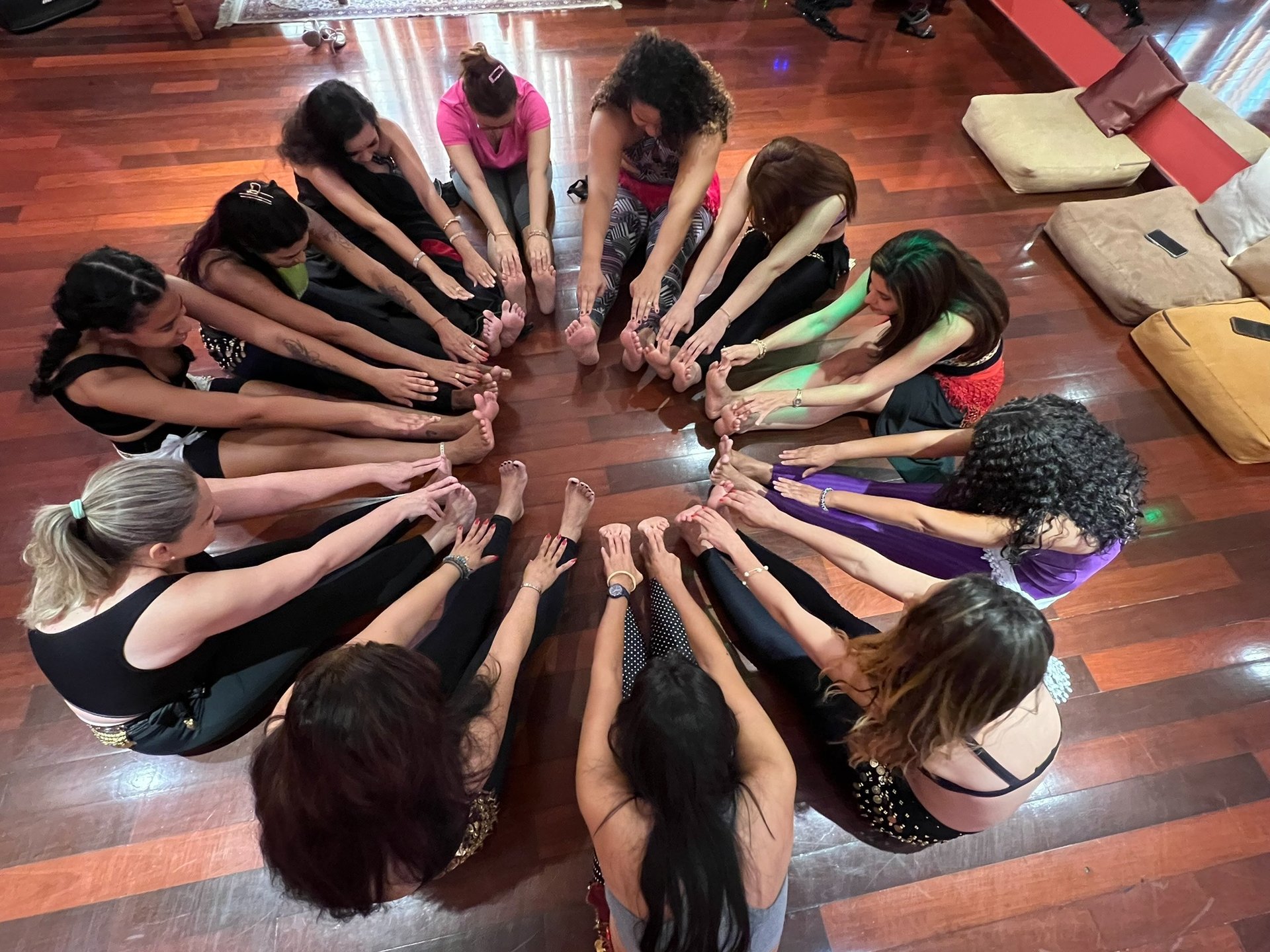 Cada aula integra alongamento, relaxamento, meditação guiada, movimentos de quadril e dinâmicas de feminilidade. Um espaço onde o corpo se fortalece, as emoções se organizam e a mulher retorna para si.